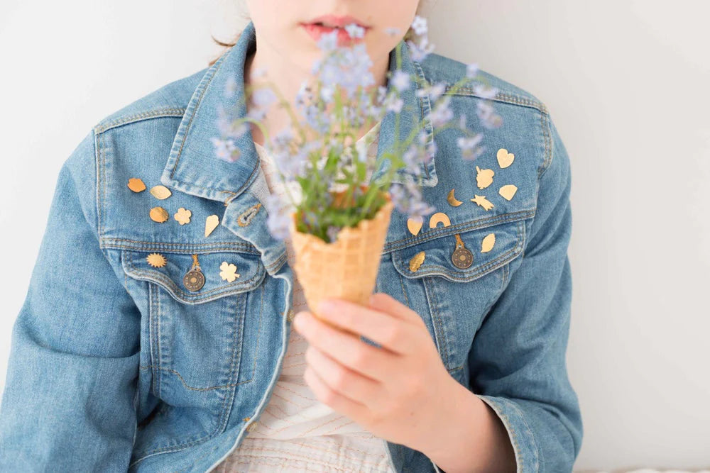 Fabriqués à la main, tous les bijoux sont en laiton doré à l'or fin 24 carats, les tiges pour oreilles percées sont en argent 925, il n'y a pas de métal allergisant.