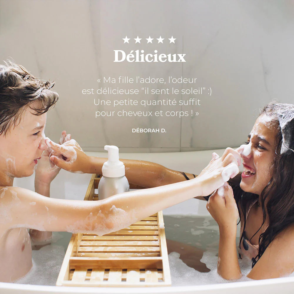 Des kids aux cheveux démêlés et à la peau douce ! Ce Corps & cheveux kids certifié bio est destiné à nos petits aventuriers. Sa formule est enrichie en Aloe Vera aux vertus hydratantes et en agents nettoyants très doux. Surprise, il ne pique pas les yeux ! Et pour faciliter le bain, vous pouvez commander également un petit gant de toilette ultra doux pour plus de mousse et moins de gaspillage ! Cerise sur le gâteau : son flacon est en verre renforcé® et 100% rechargeable.