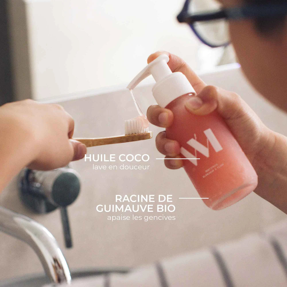 Ce dentifrice au bon goût de fraise gourmand pour des brossages ultra plaisir est certifié bio dès 7 ans ! Notée "excellent" sur YUKA et développée avec des dentistes, sa formule naturelle en gel vous laissera l'haleine fraîche et les dents protégées des caries grâce à la juste dose de fluor (1450ppm). Enrichie en poudre naturelle de silice, il luttera contre la plaque dentaire tout en douceur. Cerise sur le gâteau ? Son flacon design est en verre renforcé®, résistant aux chutes, et rechargeable à l'infini !