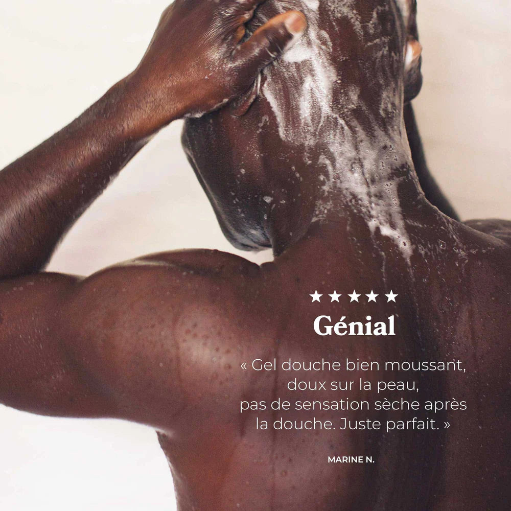 Ce gel douche à la belle mousse enveloppante nettoie en douceur le visage et le corps des peaux sensibles 🌱
