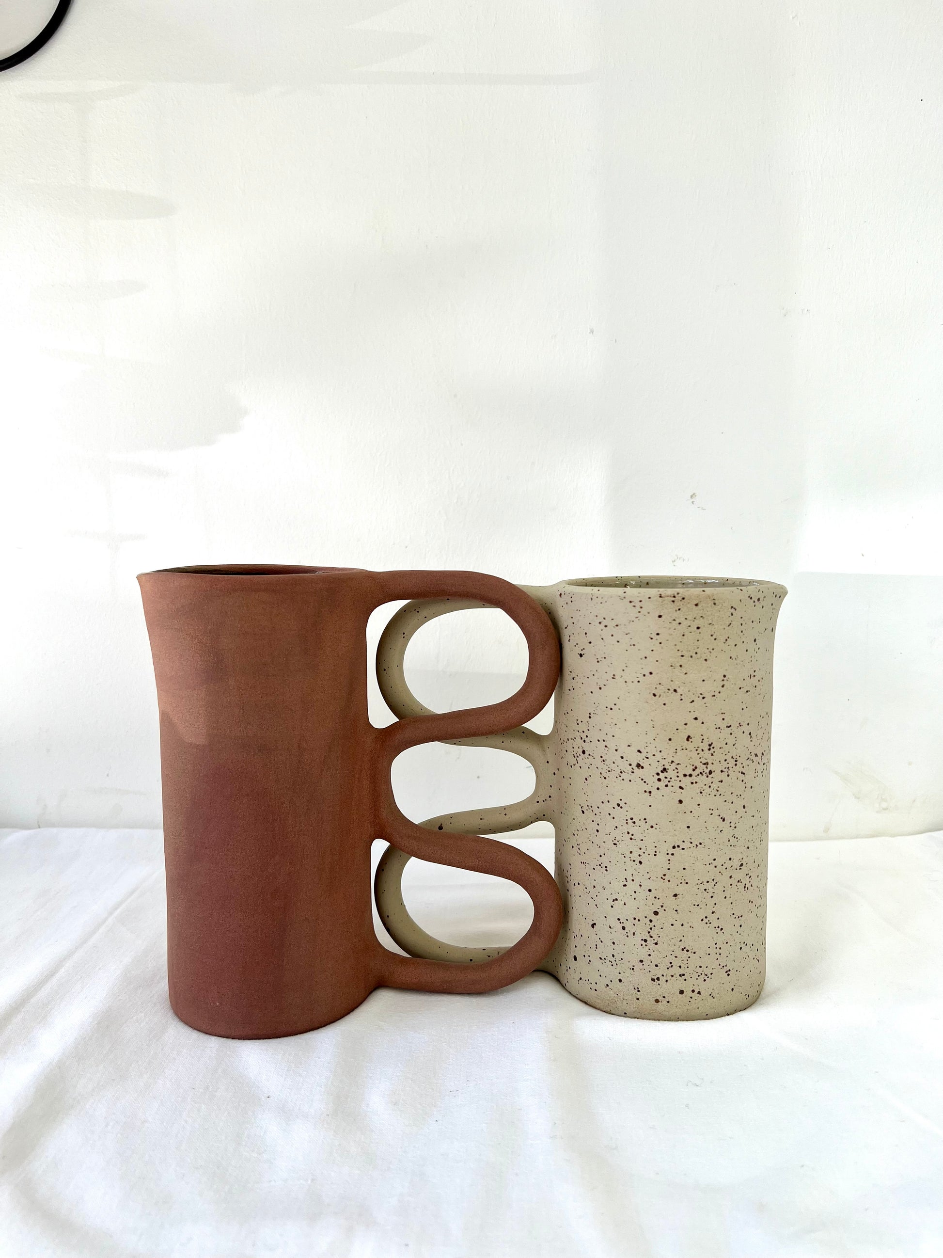 Un pichet à eau dont l'anse représente les ondulations d'une source. Pour servir ou pour fleurir