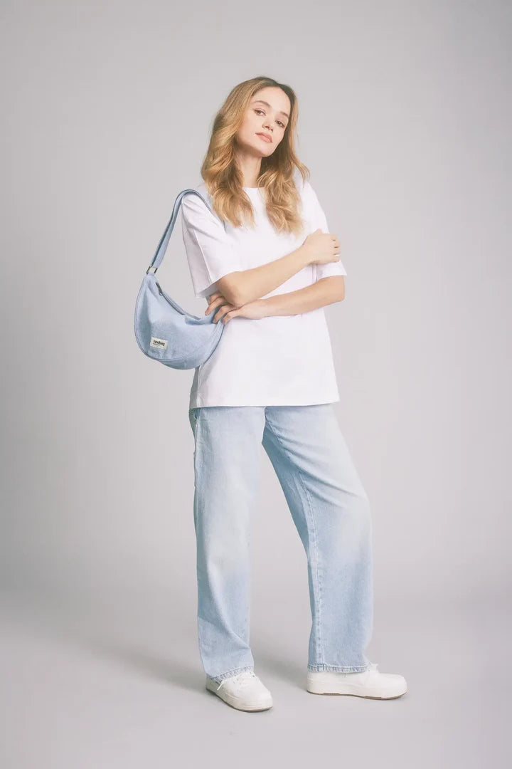 En forme de demi-lune, le sac Andrea est à mi-chemin entre la banane et la besace. Hyper pratique avec son ouverture sur le dessus, et sa poche zippée à l’arrière. Son look s’adapte à toutes les envies. On peut le porter en bandoulière court ou long, devant ou derrière, comme à l’épaule. Vous cherchez un format plus petit ?