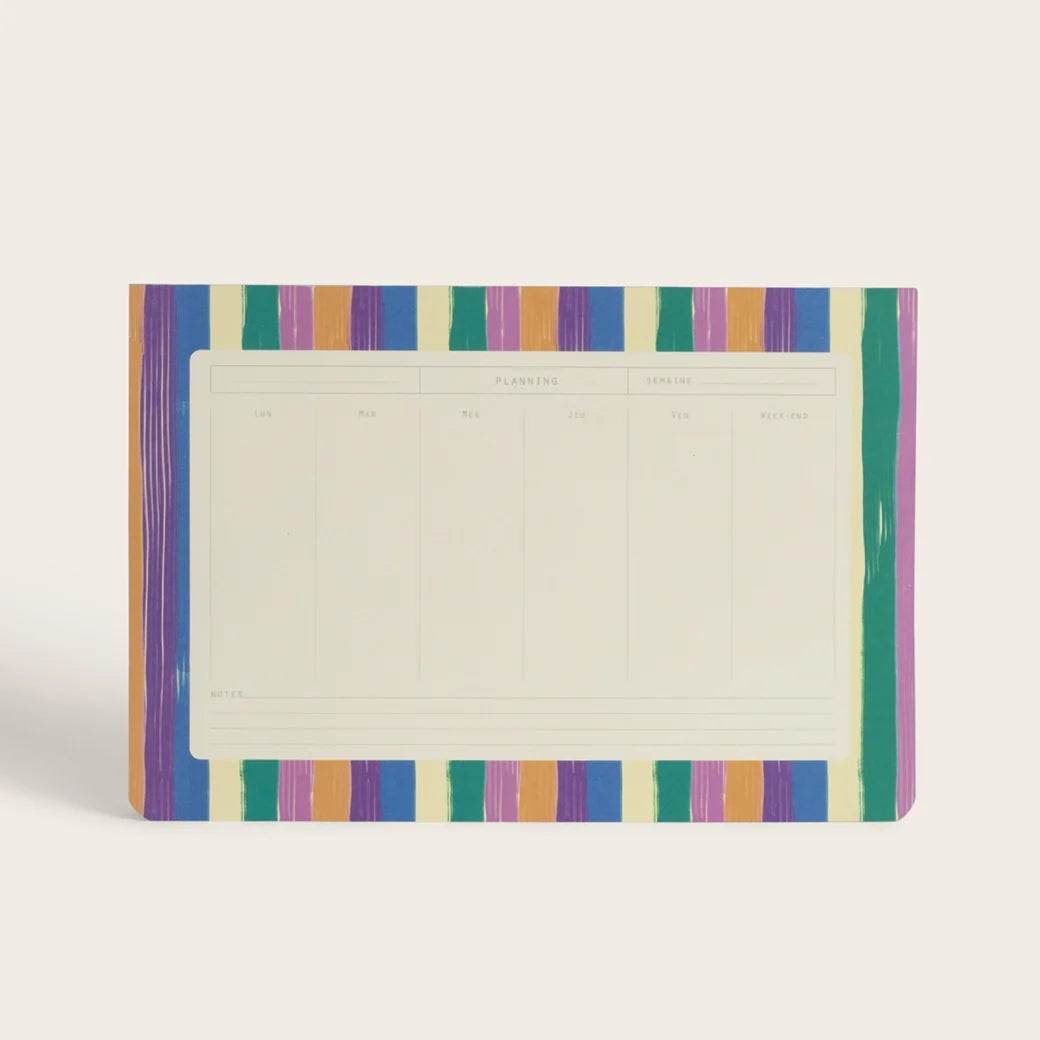 Gardez une trace de votre emploi du temps tout au long de l’année grâce à notre agenda hebdomadaire « Parasol ». Avec des rayures Bayadère audacieuses et estivales, notre design vous transportera vers des vacances ensoleillées. Restez organisé avec style.